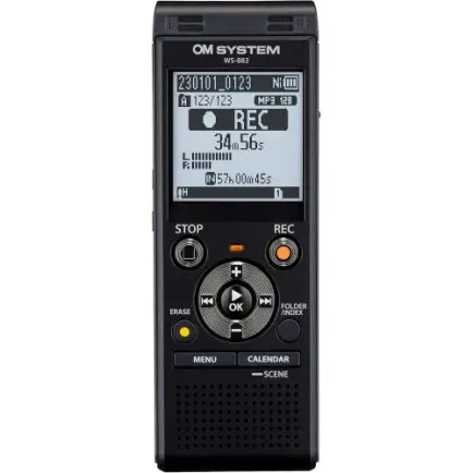 Цифровой диктофон Olympus WS-883 – настоящий мастер заметок. Его стереомикрофоны расположены под углом 90° для отличного стереозвука каждой записи, независимо от того, на занятии или на деловой встрече.