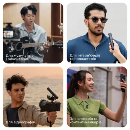 1. Петличный микрофон: Чрезвычайно легкий (только 7 г) и компактный. Идеально подходит для интервью, видеоблога или потоковой речи, оставаясь незаметной и не отвлекая внимание от кадра.