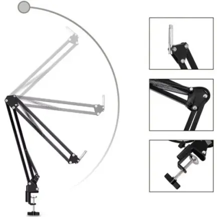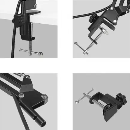 Регулируемая настольная подставка, которая крепится на столешнице, обеспечивает надежную фиксацию микрофона и позволяет снизить посторонние вибрации. Ее можно использовать и с другими микрофонами.