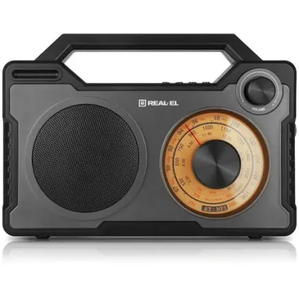 REAL-EL X-703 – не просто радиоприемник, а настоящий мобильный аудиоцентр. Помимо приема радиопрограмм, он может выступать в качестве Bluetooth-колонки и подключаться к внешним источникам сигнала с помощью провода. Наличие внешнего плеера при этом необязательно, устройство поддерживает воспроизведение MP3-файлов с накопителей USB-flash и карт microSD