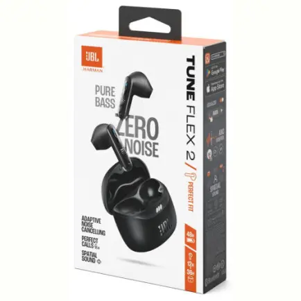 JBL Tune Flex 2 – это современные беспроводные наушники, объединяющие мощное звучание, адаптивное шумопоглощение и инновационные функции для максимального удобства пользователя. Они обеспечивают полноценное погружение в звук благодаря динамикам 12 мм и технологии JBL Pure Bass, гарантирующей насыщенные басы и чистое звучание. Независимо от того, слушаете ли вы музыку, смотрите фильм или играете в игры, JBL Spatial Sound создает объемный звук, делая каждый момент ярче.