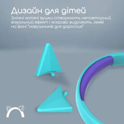 Дизайн для детей: Съемные кошачьи ушки создают неповторимый визуальный эффект и ярко выделяют Jewel на фоне "наушников для взрослых".