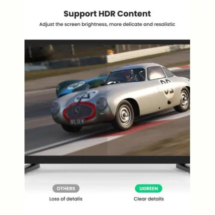 Кабель Ugreen DP 1.4 Male to Male обеспечивает воспроизведение изображения с разрешением 8K при 60 Гц с 10-битным цветом HDR. Технология VESA DSC версии 1.2 разрешает сжатие содержимого до 3:1 без визуальных потерь. Кабель также поддерживает функцию Multi-Stream Transport (MST), с помощью которой можно подключить несколько дисплеев к одному порту DP на настольном ПК или ноутбуке.