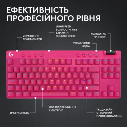 Характеристики Клавиатура беспроводная Logitech G PRO X TKL Lightspeed Magenta (920-012159)