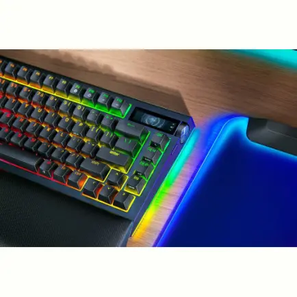 Ощутите полное погружение с Razer BlackWidow V4 Pro 75%, оснащенной настоящей беспроводной связью 4K Гц на базе Razer HyperSpeed и HyperPolling. Благодаря конструкции с возможностью горячей замены, полностью оснащенной Bluetooth, диску Razer Command Dial и OLED-дисплею для мониторинга показателей ПК, показа пользовательских GIF-файлов и многого другого, создание клавиатуры вашей мечты теперь не имеет границ.