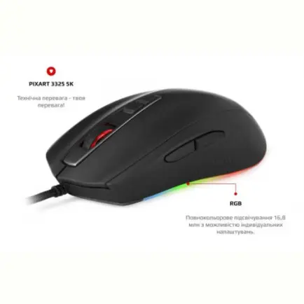 Яркая и эффектная полноцветная подсветка RGB, 16800000, с возможностью изменения режимов, погрузит вас в атмосферу игры. Реализована индикация выбранного режима DPI с помощью цвета подсветки логотипа.