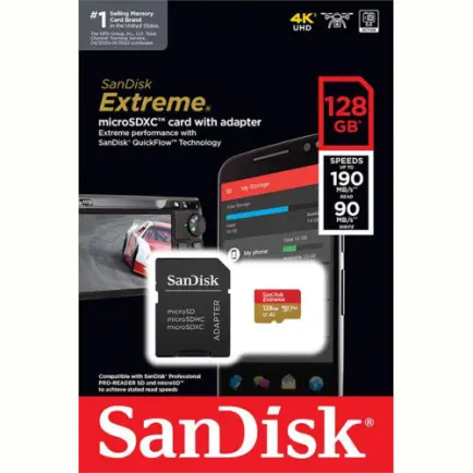 Карта памяти MicroSDXC 128GB C10 UHS-I SanDisk Extreme V30 U3 R190/W90MB/s + SD (SDSQXAA-128G-GN6MA)