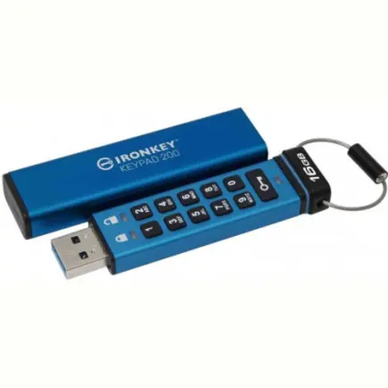 Флеш-накопитель USB3.2 16GB Kingston IronKey Keypad 200 Type-A Blue (IKKP200/16GB)