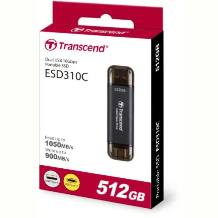 Характеристики Накопитель внешний SSD USB 3.1 Gen 2 Type-A/Type-C 512GB Transcend ESD310 Black (TS512GESD310C)