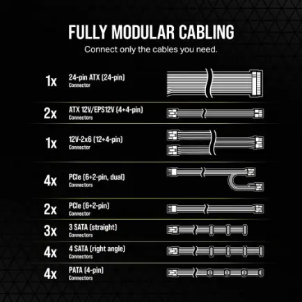 Уменьшите количество кабелей, подключая только те, которые нужны вашей системе, и ничего лишнего. Пять универсальных 8-контактных разъемов можно использовать с любым 8-контактным кабелем, удовлетворяя все потребности мощности современных материнских плат и графических процессоров.