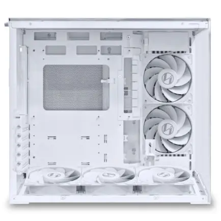 В версии Flow установлены пять вентиляторов с реверсивными лопастями: три снизу и две сбоку, обеспечивающие мощный и тихий воздушный поток. Тестирование показало, что при одинаковом уровне шума O11D Mini V2 Flow обеспечивает на 3,1°C лучшую температуру видеокарты по сравнению с LANCOOL 207, что составляет примерно 6% улучшения охлаждения GPU.