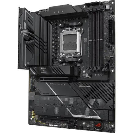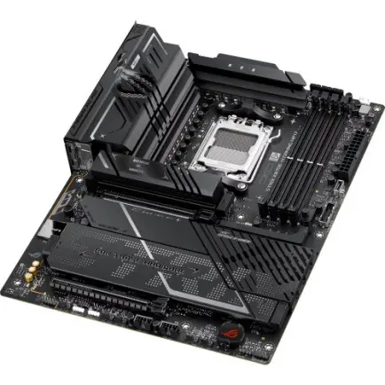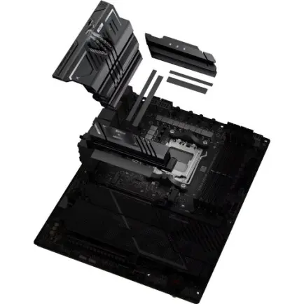 ROG Strix X870E-H Gaming WiFi7 обладает элегантным и сдержанным дизайном, что позволяет легко сочетать его с широким спектром компонентов системы. Ее насыщенно-черная печатная плата и металлические радиаторы создают темный и насыщенный вид.