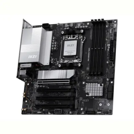 Материнская плата MSI PRO B850M-P WIFI — это компактная модель формфактора MicroATX на базе чипсета AMD B850, предназначенная для процессоров AMD Ryzen серий 9000, 8000 и 7000. Она сочетает современные технологии, такие как Wi-Fi 7, PCIe 5. геймеры и профессионалы. Эта плата идеально подходит для создания эффективных ПК с акцентом на ИИ и удобство сборки.