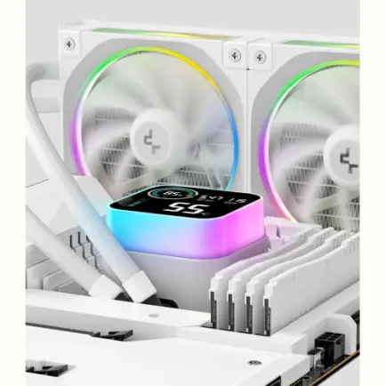 DeepCool LQ360 Ultra ARGB предлагает значительные улучшения эффективности охлаждения и визуального блеска благодаря насосу 6-го поколения и вентиляторам FL12, сохраняя при этом знакомый дизайн LQ с магнитным блоком насоса ARGB Halo и сегментированным ЖК-экраном.