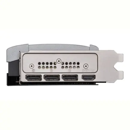 Видеокарта оснащена тремя вентиляторами TORX FAN 5.0, где лопасти соединены кольцевыми дугами под углом 22 градуса, что увеличивает воздушный поток на 23% по сравнению с обычными осевыми вентиляторами. Никелированное медное основание эффективно отводит тепло от GPU и памяти, передавая его тепловым трубкам Core Pipes для оптимального теплоотвода.