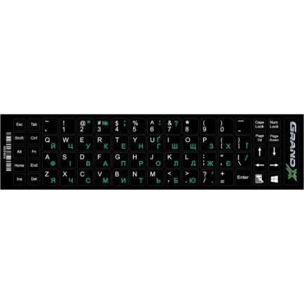 Характеристики Наклейки на клавиатуру Grand-X 68 keys Green, Latin Ukr White (GXDGUA)