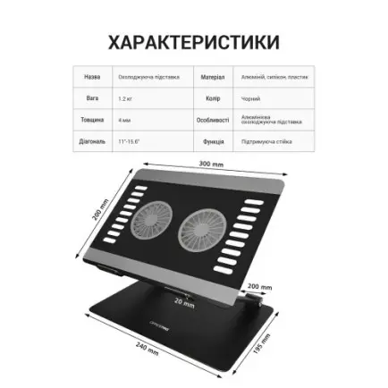 Эта охлаждающая подставка идеально подходит для ноутбуков размером от 11 до 15.6 дюймов, обеспечивая оптимальную вентиляцию и сохранение производительности вашего устройства.