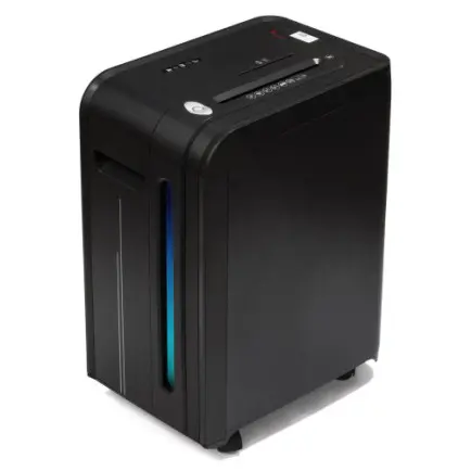 Истребитель документов офисной серии с высоким уровнем секретности. Перекрестная резка, 5-й уровень секретности, размер фрагментов 2х8 мм. Уничтожает одновременно до 17 листов бумаги (70 г/м2). Принимает документы, скрепленные скобами. Возможность уничтожения пластиковых карт, CD-дисков. Автоматический старт и стоп, автоматический реверс. Объем корзины для отходов 40 л. Автостоп при переполненной корзине. Обзорное окно контроля заполнения корзины подсвечивается во время работы. Для удобства перемещения оснащен колесами. ТМ Agent – оптимальное сочетание цены, качества и набора необходимых функций для работы в офисе.