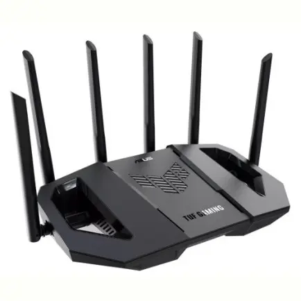 Трехдиапазонный игровой маршрутизатор TUF Gaming BE9400 для расширения сети: стандарт Wi-Fi 7 (802.11be), 4 Ethernet-порта 2,5 Гбит/с, переадресация портов в 3 шага, Smart Home Master, поддержка технологии AiMesh, система информационной защиты AiProtection.