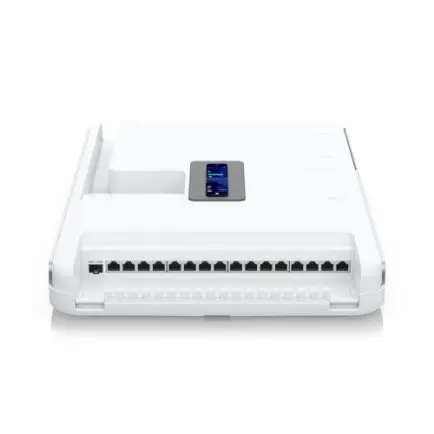 Dream Wall от UniFi – это универсальное устройство нового поколения. Оно сочетает шлюз с межсетевым экраном, точку доступа Wi-Fi 6, NVR и коммутатор с функцией PoE. Устройство предоставляет широкий спектр опций сетевого подключения. Есть возможность подключения через порт 10Gbps SFP+ или порт Ethernet 2.5Gbps. Для подключения других устройств в локальной сети предусмотрен порт 10Gbps SFP+ и 17 портов Ethernet 1Gbps, из которых 12 поддерживают функцию PoE (4x POE++, 4x POE+ и 4x POE). Сначала устройство оборудовано одним источником питания с возможностью горячей замены мощностью 550W, а также предусмотрена вторая позиция по обеспечению резервирования. Максимальное энергопотребление устройства составляет 532W, включая подключенные устройства.