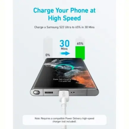 Сертифицированный кабель для безопасной и надежной зарядки практически любого устройства USB-C (Несовместим с Power Delivery).