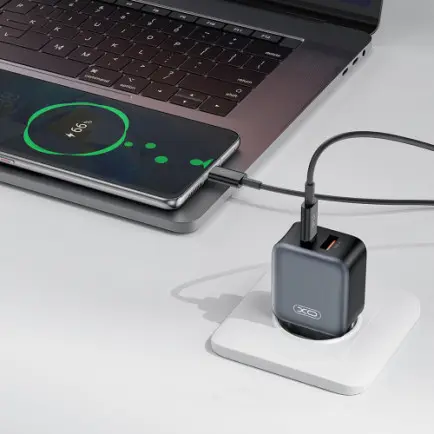 XO L154 - сетевой зарядный аппарат с общей мощностью 20 Вт. Коннектор USB-C с поддержкой технологии Power Delivery и классический порт USB-A Quick Charge на 18 Вт.