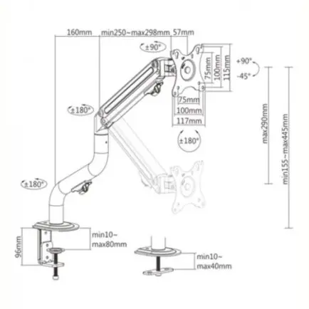 Прочные регулируемые газовые пружины подходят для мониторов весом от 2 до 8 кг