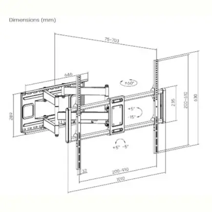 | Расстояние от стены | 75 - 703 мм |