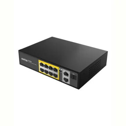 Комутатор netis P110GH PoE+ є чудовим рішенням для створення домашньої чи офісної мережі. Сумісність з камерами PoE, Wi-Fi точками доступу та іншим обладнанням, у тому числі без підтримки PoE для передачі даних в мережі. Усі 8 портів RJ45 (зі швидкістю 10/100 Мбіт/с) підтримують технологію живлення Ethernet (PoE+). Пристрій автоматично розпізнає і подає живлення на обладнання, що підтримує стандарти IEEE 802.3af і IEEE 802.3at: наприклад, точки доступу PoE, IP-телефони, IP-камери і т. д. При цьому електроживлення і дані передаються по одному і тому ж кабелю, що дозволяє підключити до мережі нові пристрої, розташовані далеко від ліній електроживлення чи розеток. Крім іншого, пристрій має два Gigabit Ethernet uplink-порти і SFP оптичний порт.