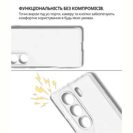 Чохол легко встановлюється, щільно прилягає до поверхні смартфона, не залишаючи повітряних зазорів, які могли б накопичувати пил, бруд або вологу. Легкий і непомітний, він не додає зайвого об'єму чи ваги вашому пристрою, забезпечуючи надійний захист від ударів, пошкоджень і вологи.