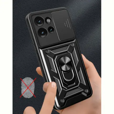 Гнучка силіконова панель має жорсткий металізований корпус та кільце-підставку для пальця. Чохол здатний витримати навіть сильні удари та подряпини.