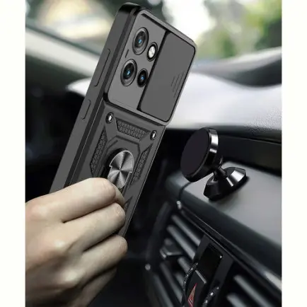 Гнучка силіконова панель має жорсткий металізований корпус та кільце-підставку для пальця. Чохол здатний витримати навіть сильні удари та подряпини.