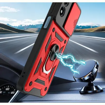 Гнучка силіконова панель має жорсткий металізований корпус та кільце-підставку для пальця. Чохол здатний витримати навіть сильні удари та подряпини.