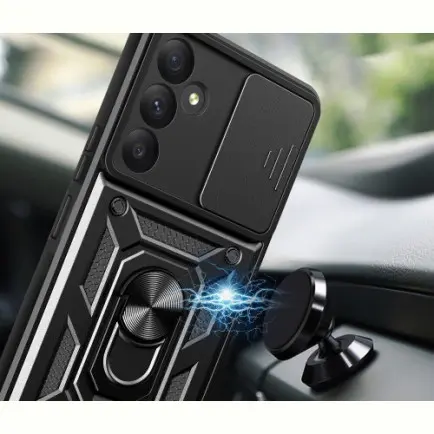 Гнучка силіконова панель має жорсткий металізований корпус та кільце-підставку для пальця. Чохол здатний витримати навіть сильні удари та подряпини.