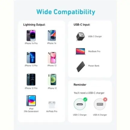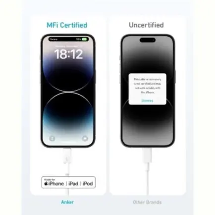 Цей зарядний кабель для iPhone сертифікований MFi для бездоганної сумісності з пристроями Lightning, забезпечуючи безпечну та надійну зарядку щоразу.