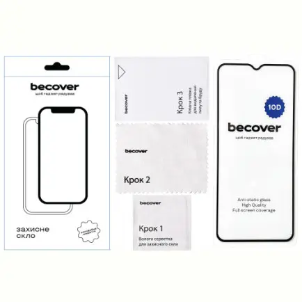 Повне Покриття: Скло 10D має закруглені краї, що дозволяє йому ідеально прилягати до екрану смартфона, забезпечуючи повний захист без проміжків.