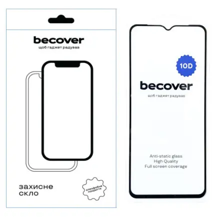 Повне Покриття: Скло 10D має закруглені краї, що дозволяє йому ідеально прилягати до екрану смартфона, забезпечуючи повний захист без проміжків.