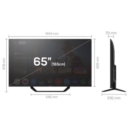 Пристрій має 65-дюймовий екран, що дає змогу зануритися в захопливий контент із дивовижним рівнем деталізації. Телевізор створений у сучасному та елегантному дизайні, який гармонійно доповнить інтер’єр будь-якого приміщення. Тонкі рамки максимізують площу перегляду, дозволяючи насолоджуватися кожним моментом без відволікаючих елементів.