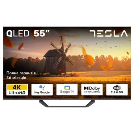 Телевізор Tesla Q55E655GUS - втілення передових технологій і сучасного дизайну в одному пристрої. Цей розумний телевізор зроблений для того, щоб подарувати незабутні моменти розваг і комфортного перегляду улюбленого контенту. Поєднання високої якості зображення, потужного звуку та інноваційних функцій дасть змогу зануритися у світ яскравих емоцій, навіть не виходячи з дому.