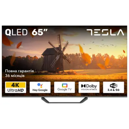 Телевізор Tesla Q65E655GUS - втілення передових технологій і сучасного дизайну в одному пристрої. Цей розумний телевізор зроблений для того, щоб подарувати незабутні моменти розваг і комфортного перегляду улюбленого контенту. Поєднання високої якості зображення, потужного звуку та інноваційних функцій дасть змогу зануритися у світ яскравих емоцій, навіть не виходячи з дому.