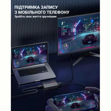 Fifine Ampigame V3 - це карта відеозахоплення з інтерфейсом підключення HDMI 2.1. Пристрій підтримує запис в якості до 4K і з частотою оновлення 30fps. Завдяки сучасному формату підключення HDMI 2.1, карта підтримує підключення до різних пристроїв і дозволяє вивести контент з IMAC, Nintendo Switch, Play Station чи ноутбука на телевізор або монітор.